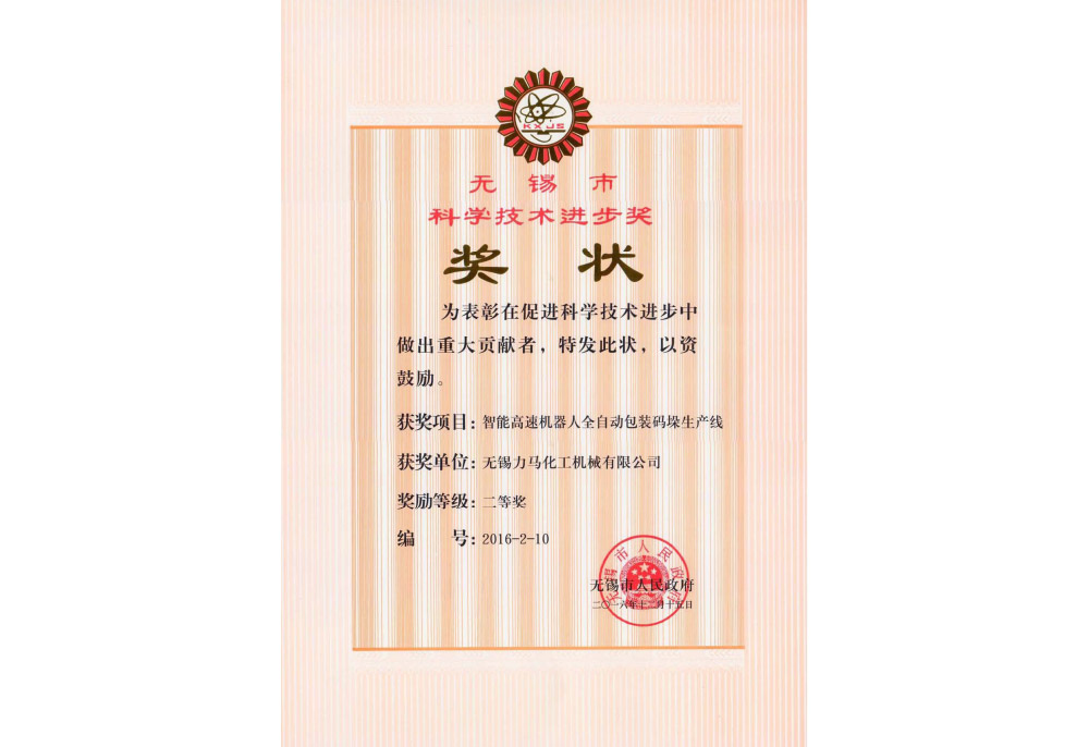 Jiangsu province intelligent packaging palletizing engineering technology center